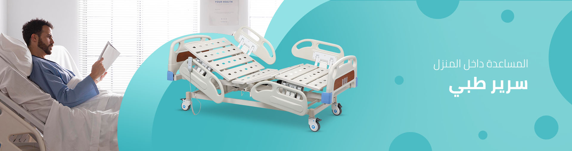 السعر بدون ضريبة : 3,500.00 ﷼سرير طبي كهربائي مطوّر، مصنوع بالكامل من الفايبر، يناسب المرضى طريحي الفراش، خمس حركات يساعد التغيير بينها على تنشيط الدورة الدموية، سهولة في تغيير ال..