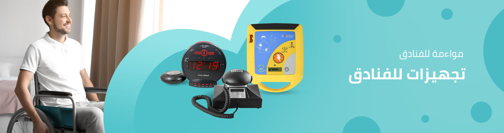 السعر بدون ضريبة : 265.00 ﷼مواصفات مجموعة احتياجات سمعية وبصرية للفنادق:مجموعة من منتجات خاصة بتهيئة الفنادق لذوي الإعاقات ليرتادوها بشكل آمن.محتويات المجموعةجرس باب وجهاز منبه ..